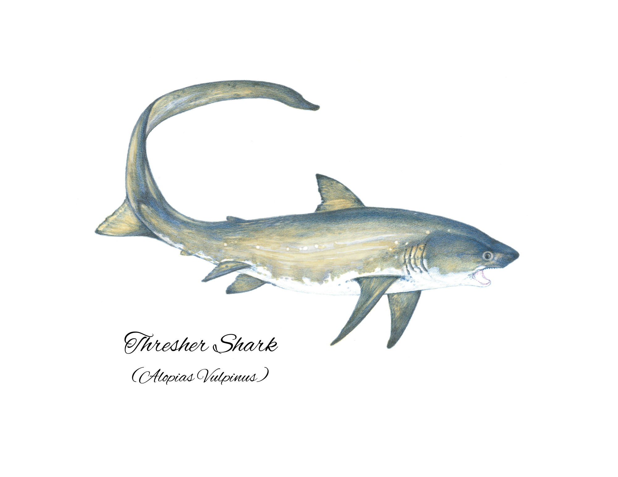 This 11×14 print showcases a Smalltooth Sawfish, vividly portrayed by artist Michael Ledrich. Using a blend of watercolor and colored pencil, Ledrich captures the unique features of this fascinating sea creature. The artwork is a celebration of marine life, making it a perfect addition for any art lover or ocean enthusiast.
